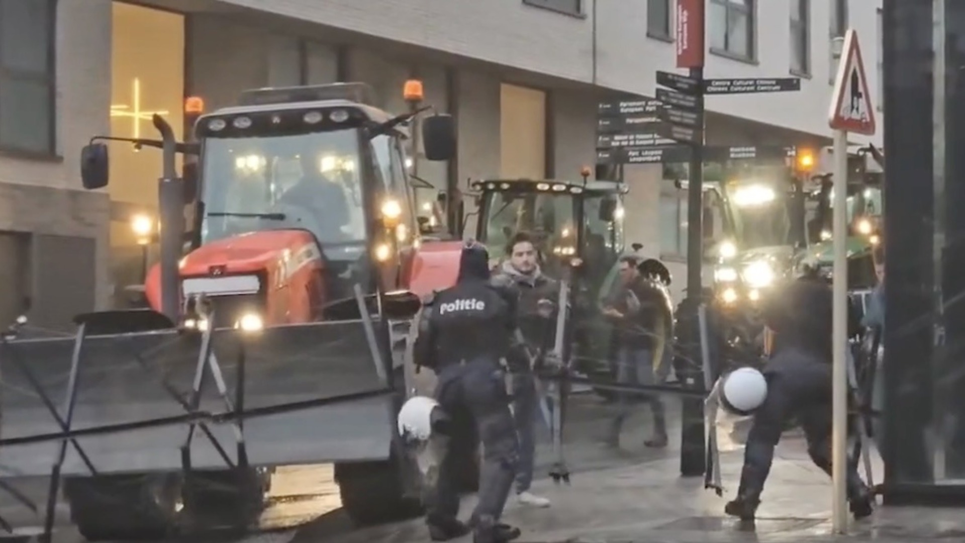 This morning, farmers managed to force a police blockade in Brussels at the intersection of Avenue d’Auderghem and Rue Belliard, using their tractors. Police sent emergency reinforcements while law enforcement officers were attacked with manure, forcing them to retreat further.
