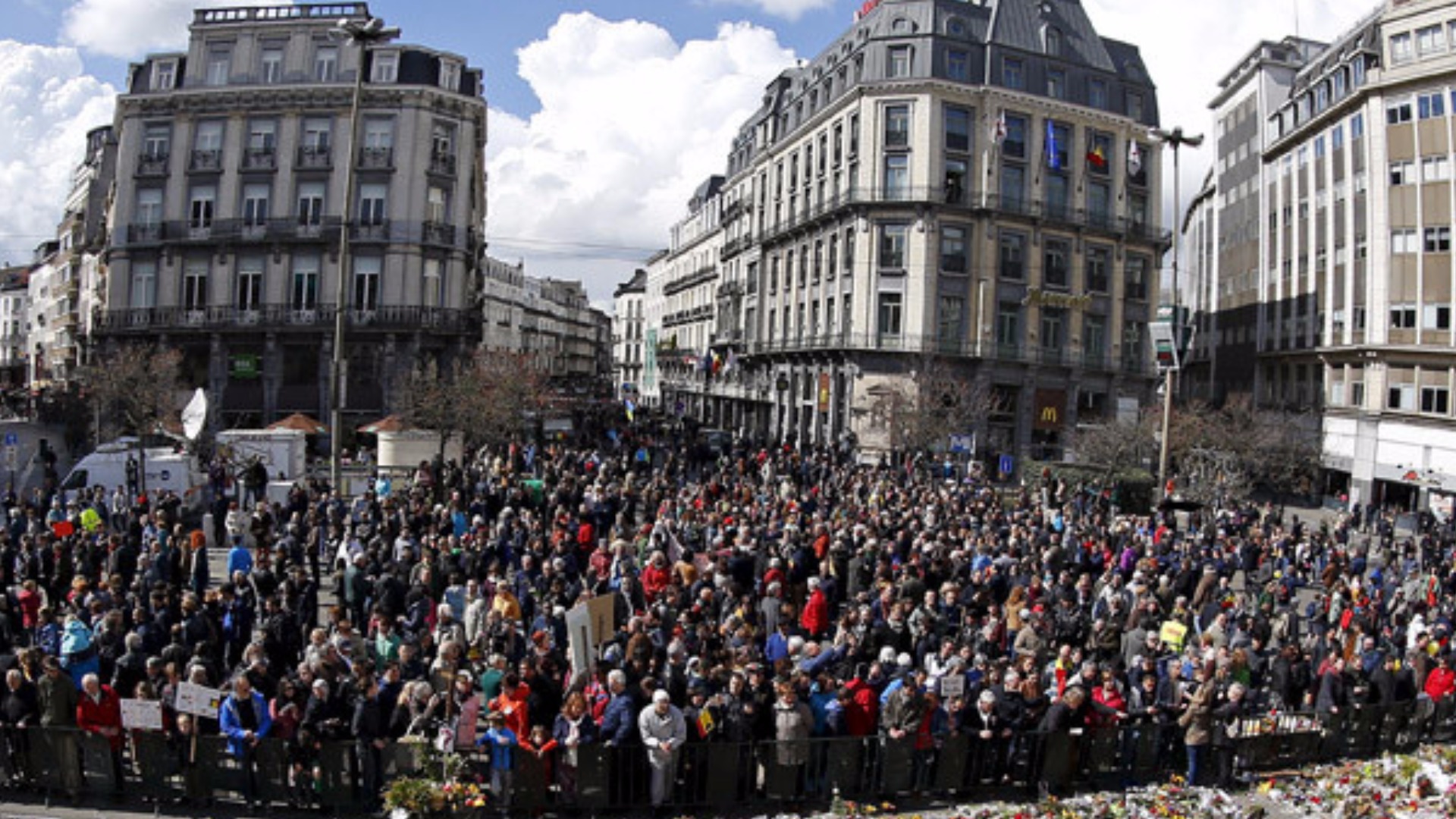 Participants in the march against terror, also known as “All Together ", went to the Place de la Bourse, the place where is located the memorial of the 22nd of March terrorist attacks victims.