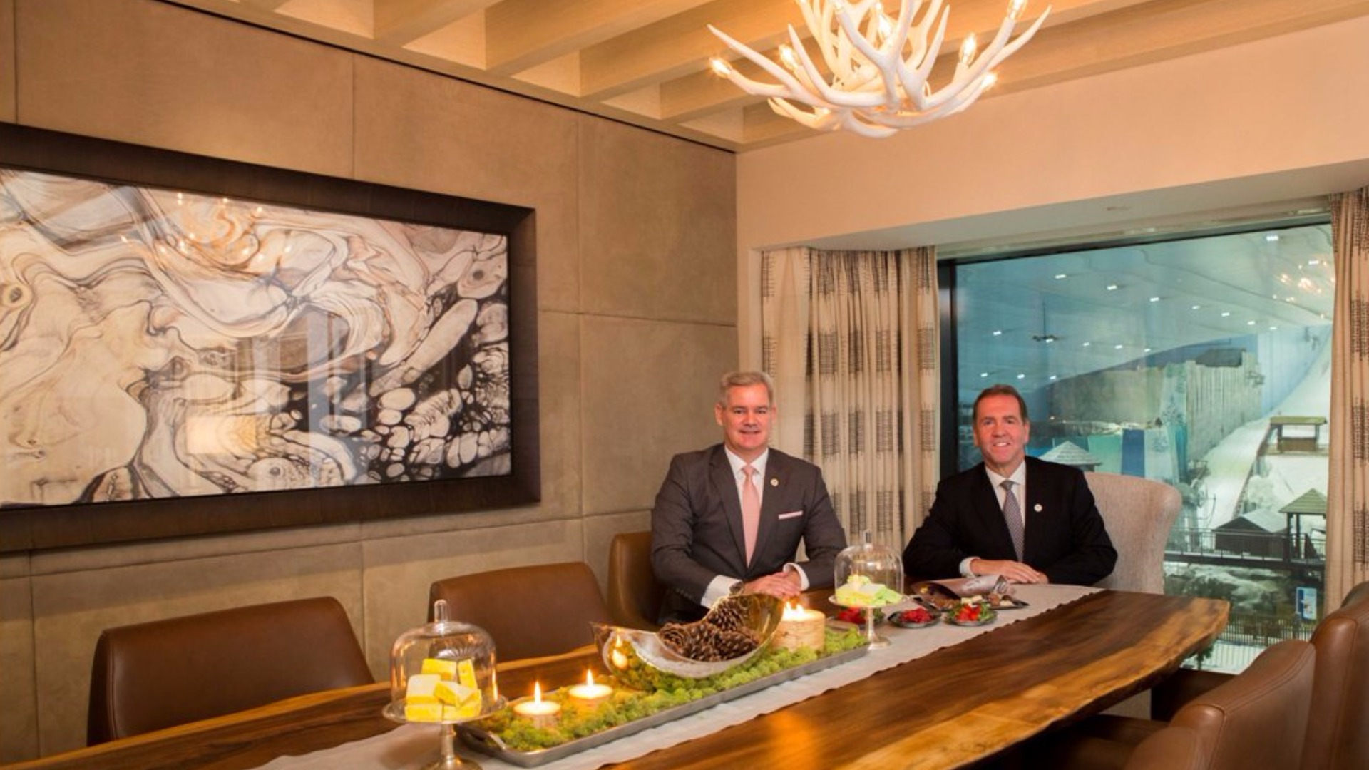 The hotel’s 15 new Aspen Ski Chalets offer an unique view over the powdery snow of Ski Dubai, as well a ski lodge aesthetic with plush wooden fixtures, mellow, lighting and even a roaring (crackling) 2D fireplace projection in each lounge and master bedroom.