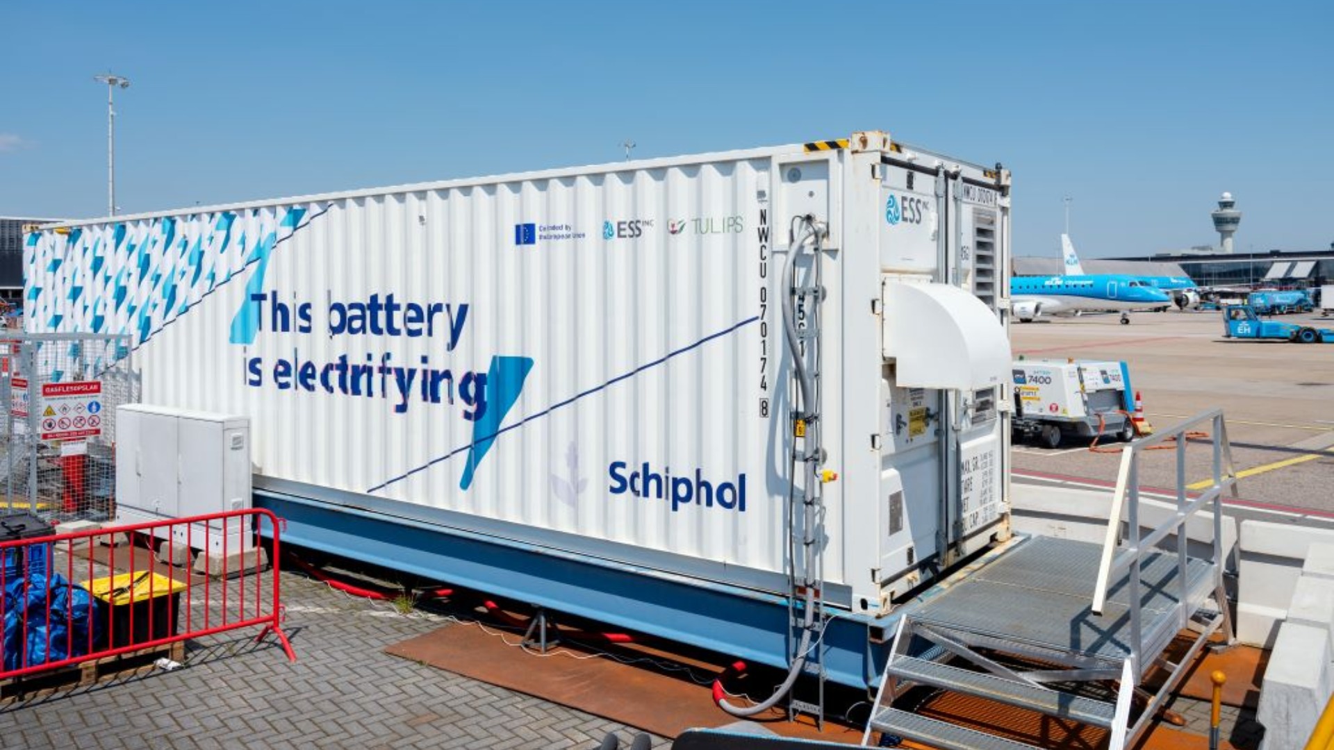 Developed by ESS Inc. in Oregon, USA, the battery technology was brought to Schiphol by the airport's innovation team. Volker Infra and KES manage and utilize the battery, which is partially subsidized by the EU as part of the TULIPS program. This European collaboration, led by the Royal Schiphol Group and involving 32 aviation parties and knowledge institutes, aims to accelerate sustainable innovations in airports.