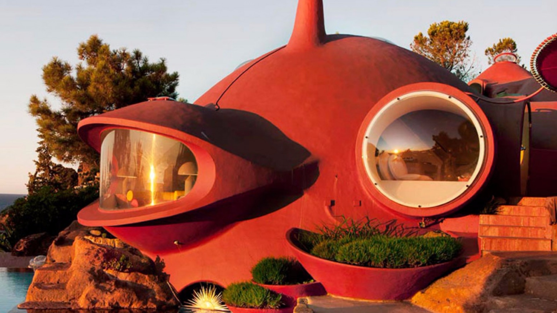 This amazing residence is not a tourist attraction, but the dream house of the famous Italian fashion designer Pierre Cardin on the French Riviera, near Cannes. Known as the "Palais Bulles" the bubble house in Théoule-sur-Mer was originally designed by the Finnish architect Antti Lovag for a French industrialist, and its futuristic design with strange windows looks like a submarine. The design truely exploited the spectacular volcanic landscape of the Côte d'Azur and unequaled beauty of the Mediterranean.
